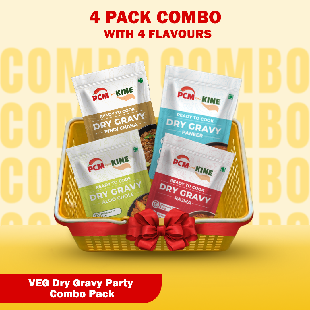 Introducing the Veg Ready to Cook Party Combo Pack from PCM∞Kine – your ultimate solution for quick, delicious, and authentic Indian meals! This combo includes four varieties of dry gravies: Pindi Chana, Rajma, Paneer, and Aloo Chole. Each pack contains 5 sachets, giving you a total of 20 meals, ready in just 10 minutes. Perfect for busy professionals, students, or anyone who loves a good meal without the hassle.